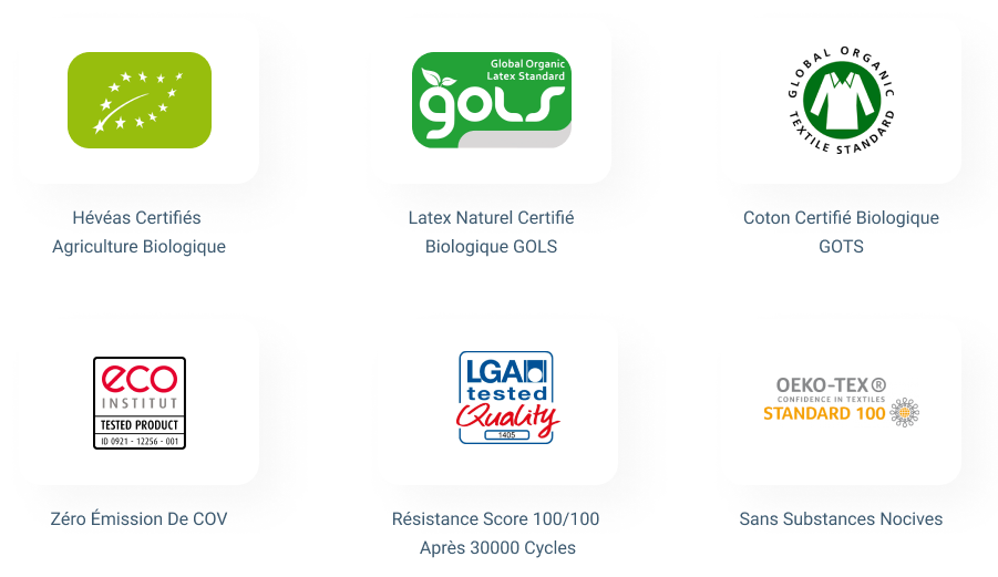 - Le latex naturel bio est certifié GOLS
